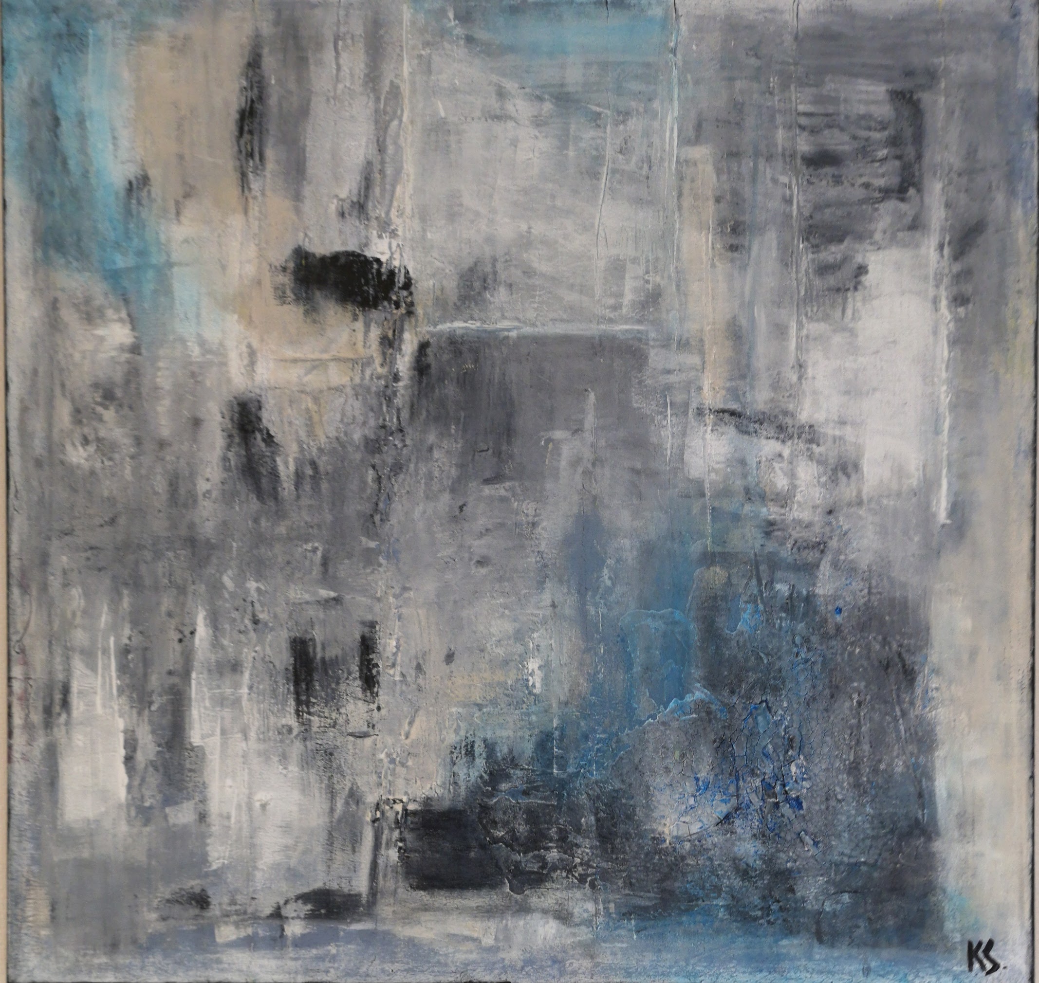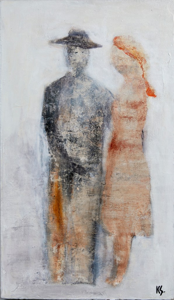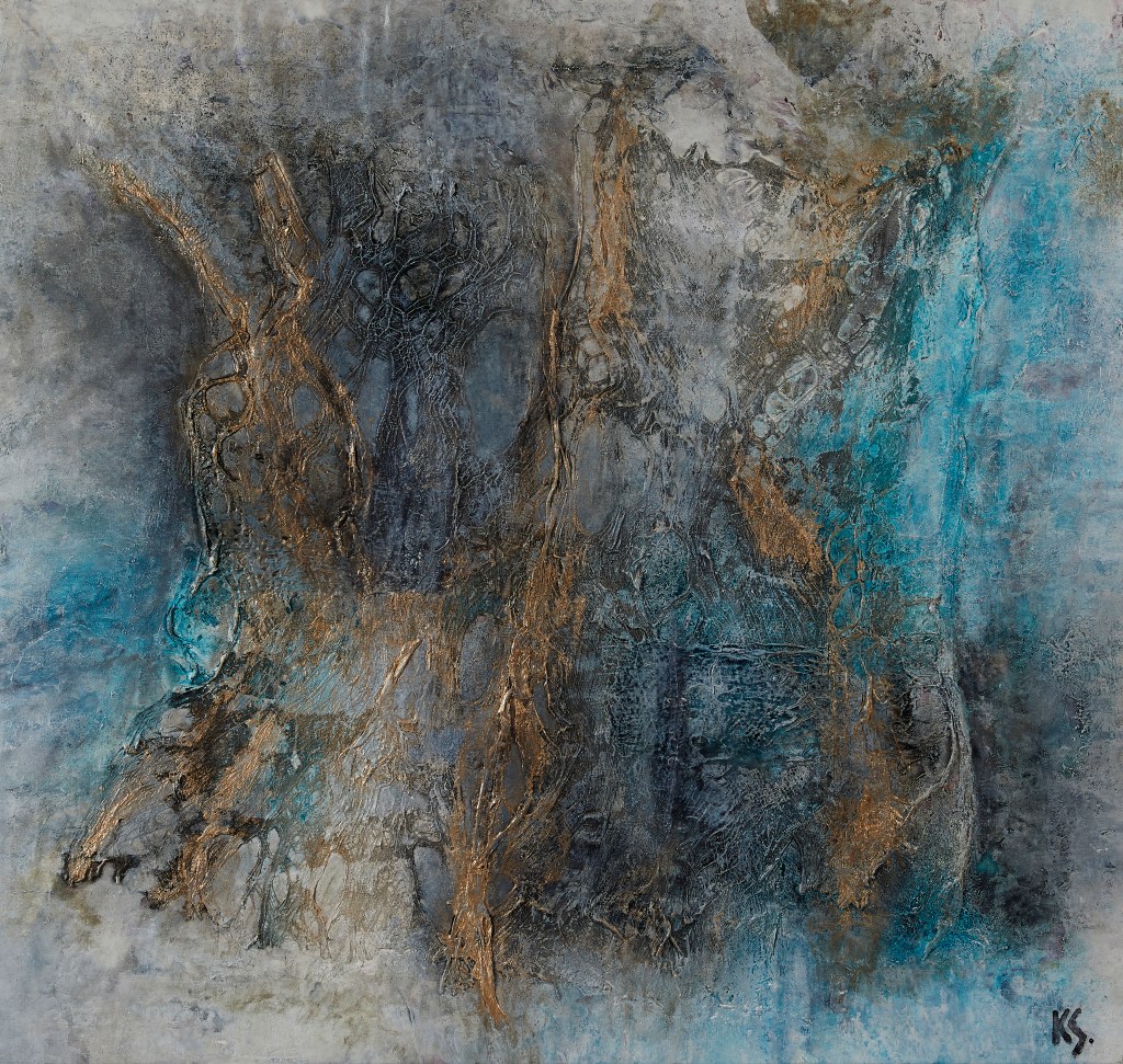 ”Never go back – just forward” akryl mixed media på canvas. Privat ägo.
