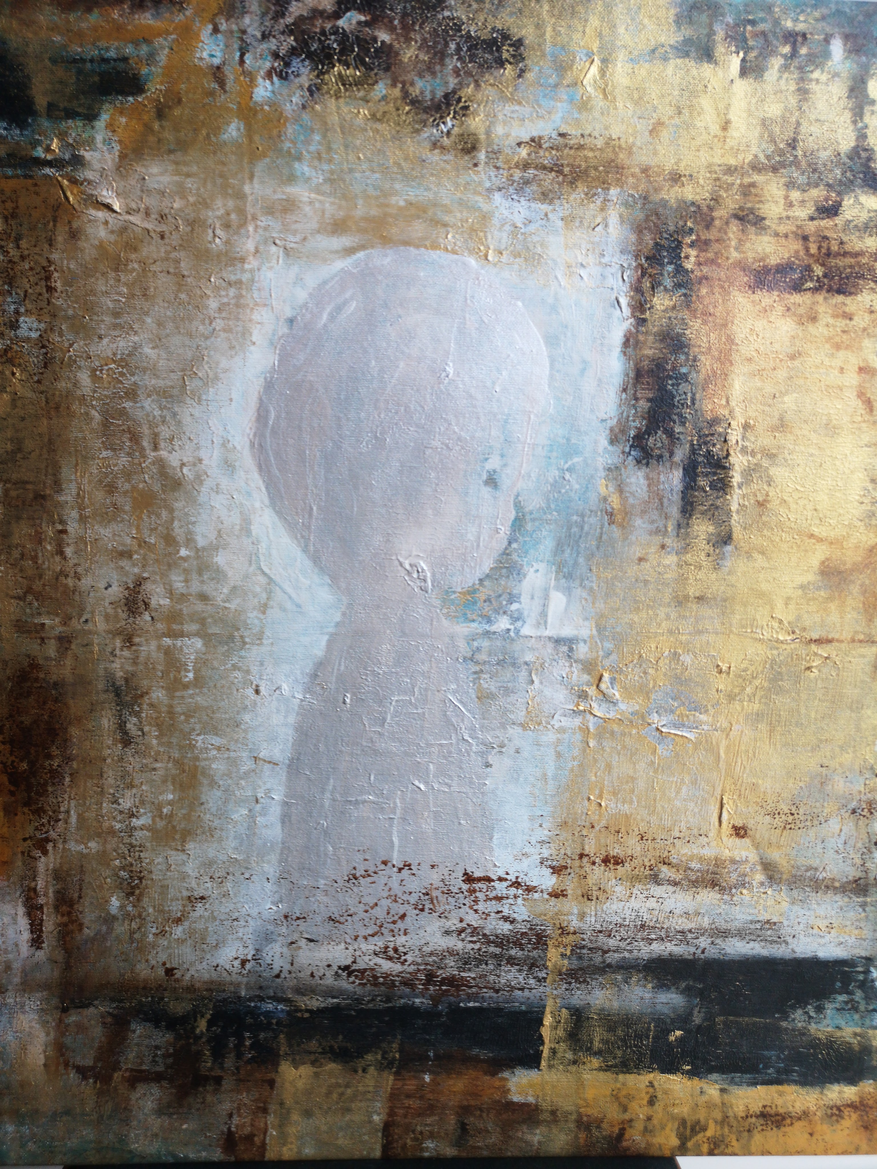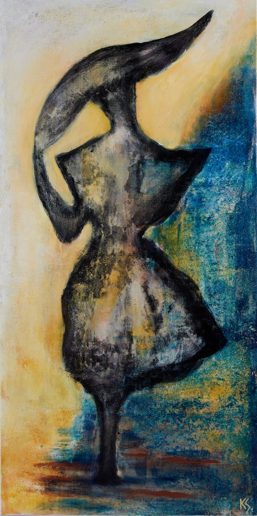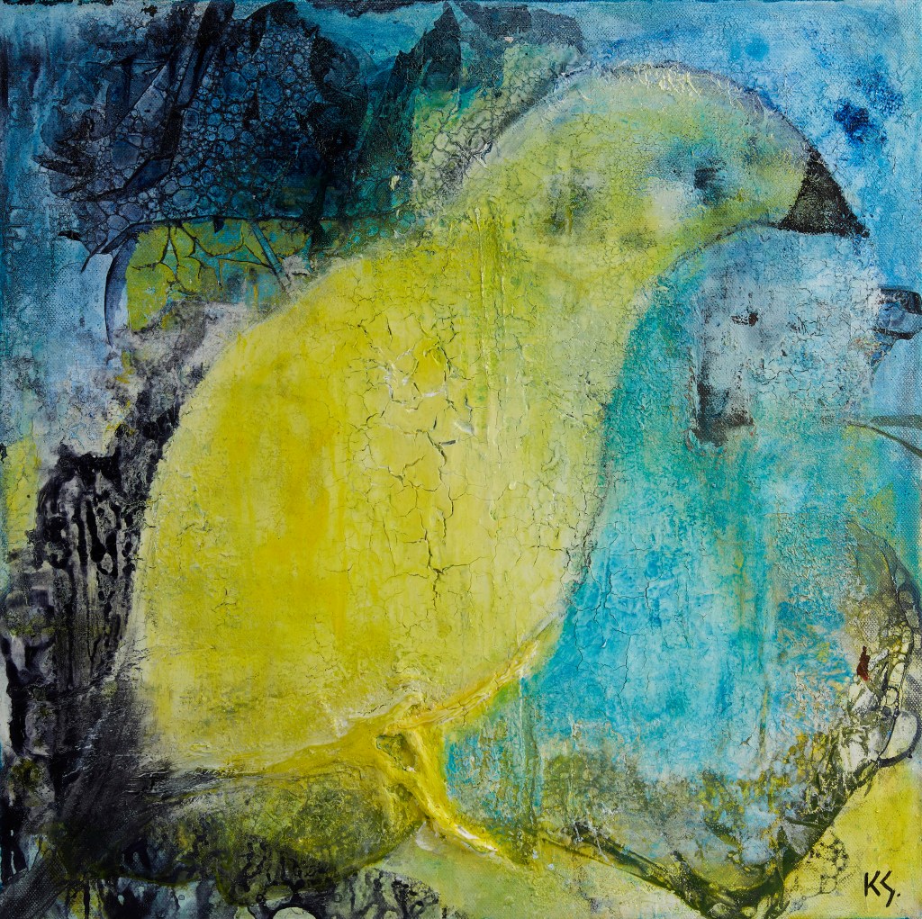 ”En fågel som bara dök upp” akryl och mixed media på canvas. Såld.